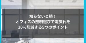中小企業 / 電気設備 知らないと損!オフィスの照明選びで電気代を30%削減する5つのポイント オフィスの電気代を確実に30%削減するための実践ポイントを専門家がわかりやすく解説。LED照明への切り替え、人感センサー・調光機能の活用、適切な照度設定、色温度の最適化、タスク・アンビエント照明など、すぐに導入できる具体策を網羅。生産性向上とコスト削減を同時に実現したい企業に必読の内容です。