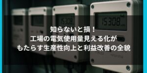 中小企業 / 省エネ / 節電 / 電気設備 知らないと損!工場の電気使用量見える化がもたらす生産性向上と利益改善の全貌 電気料金高騰や脱炭素化対応が急務の今、工場の電気使用量見える化は利益改善の鍵。設備別の電力データを可視化し、省エネ・異常検知・予防保全を実現。導入方法や補助金活用、成功事例を紹介し、生産性と企業価値を同時に高める最適戦略を解説。